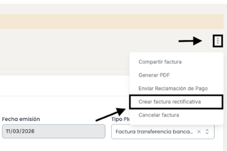 Selecciona Crear factura rectificativa.