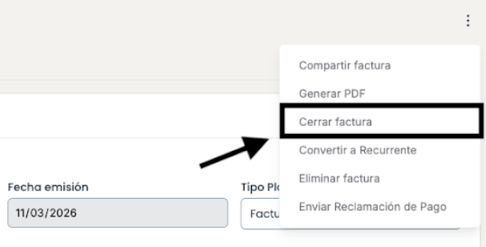 Haz clic en Cerrar factura.