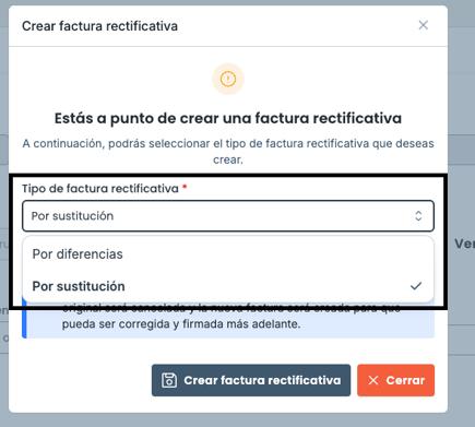Elige el tipo de factura rectificativa:
